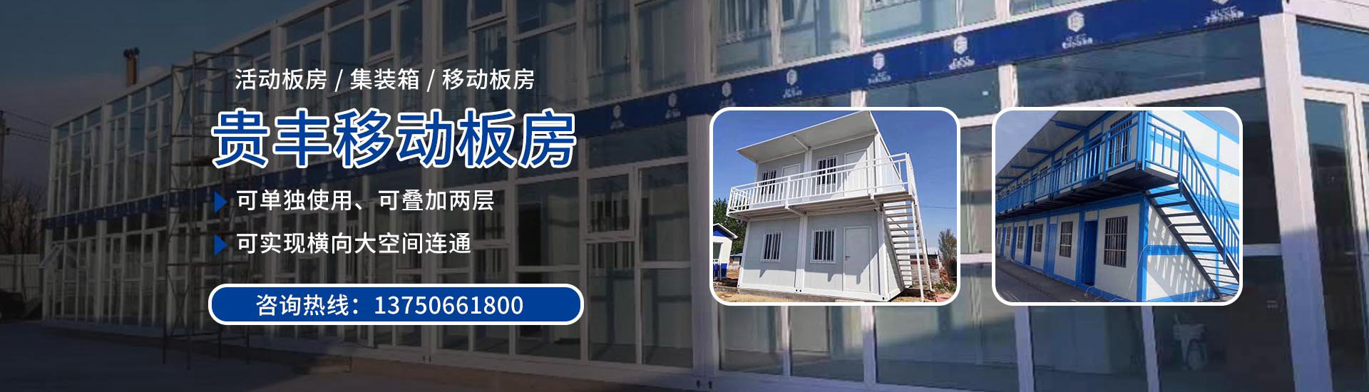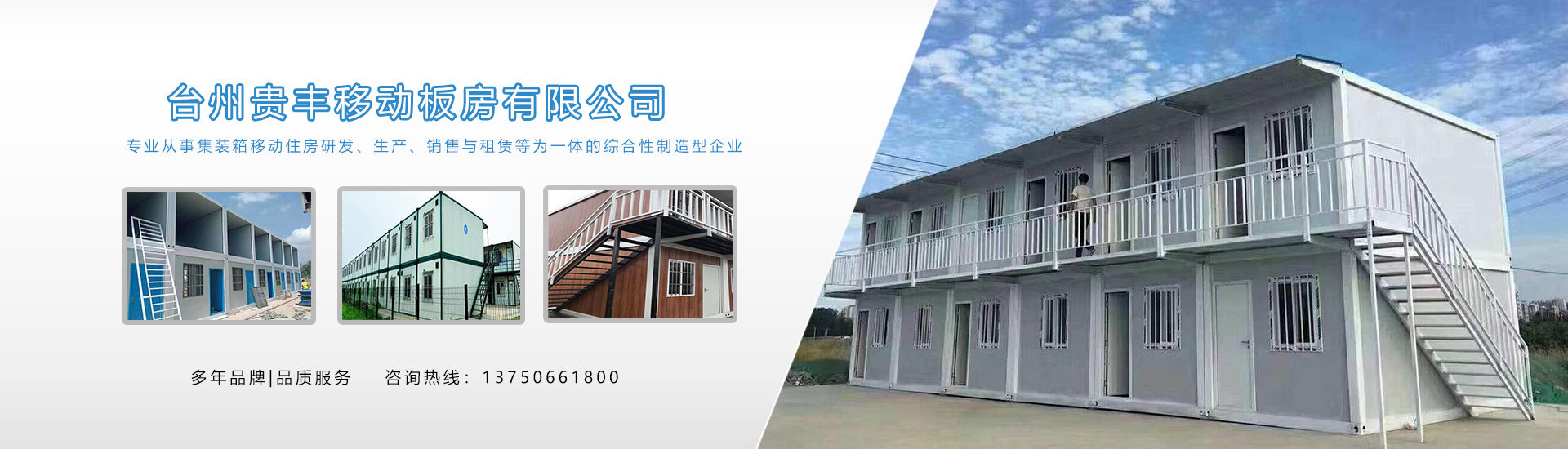 臺州貴豐移動板房有限公司從事集裝箱移動住房研發、生產、銷售與租賃等為一體的綜合性制造型企業。貴豐移動房為滿足工程項目簡單住宿、辦公而研發的組合式集裝箱移動房,該產品可單獨使用、可疊加兩層、也可實現橫向大空間連通,作為大空間辦公室、會議室、食堂等功能使用。        產品被廣泛適用于工地工廠住房,拆遷過渡房,應急辦公室,值班崗亭,門面房,樓房建筑類、高速公路類、高速鐵路類、軍工工程類、救災安置房類、鋼結構組合房類、特種鋼結構組合房等戶外作業領域。另可根據客
